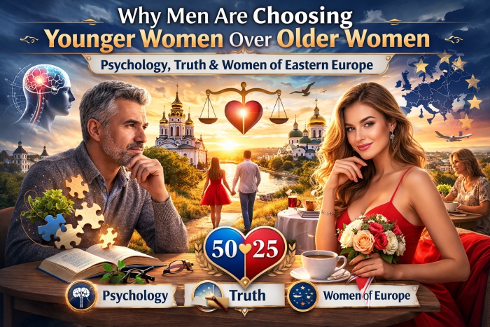 This article was written by Boryslava Barna, co-founder of the international matchmaking agency CQMI, whom I married in 2016. She writes daily content for Ukrainian women on our Ukrainian blog. This time, I wanted to adapt her perspective — the view of an Eastern European woman — for you, the English-speaking men who are genuinely searching for a serious relationship. The original article in Russian is available here: Почему мужчины выбирают молодых женщин (cqmi.com.ua).