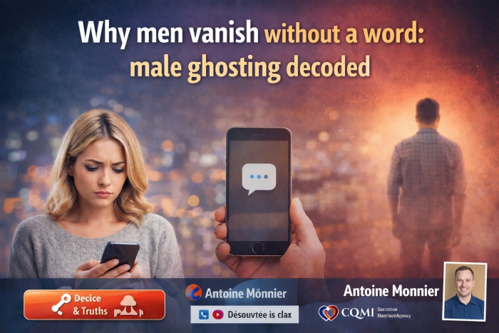 Furthermore, at CQMI, over 40% of male applications are rejected during the selection process. We only accept men whose life plans genuinely correspond to what our members are looking for. This filter does not guarantee the complete absence of ghosting — no process can fully control human psychology — but it dramatically reduces it. Not because we perform miracles, but because we remove the men who were never going to stay.